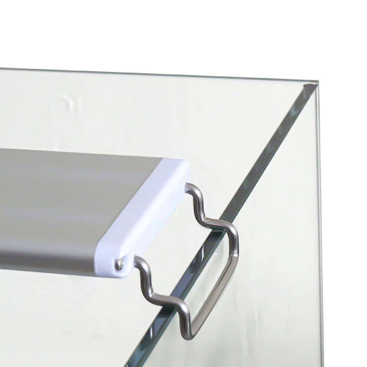 Išėmus iš dėžutės, vielinės rankenos turi būti pritvirtintos abiejose lempos pusėse ir išdėstytos taip, kad jos remtųsi į akvariumo stiklą. Reguliavimo diapazonas leidžia naudoti lempą įvairių dydžių akvariumuose, tačiau rekomenduojama laikytis šių matmenų diapazonų.