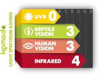 90% šios lemputės sunaudojamos energijos skleidžiama kaip naudingi šildantys infraraudonieji spinduliai, efektyviai nukreipiantys šilumą į norimą kaitinimosi vietą, užtikrinant optimalią jūsų gyvūno termoreguliaciją.
