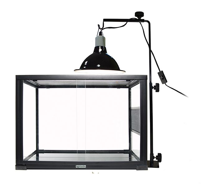 Komodo šviesos stovas yra saugus ir paprastas būdas suteikti šilumos ar šviesos šaltinį bet kuriai buveinei ir ypač tinka vėžlių stalams ir tinklinio stiklo terariumams. Sunki apatinė plokštė lengvai slysta po buveine ir laiko laikiklį savo vietoje, kad pasirinktą lempos laikiklį būtų galima uždėti ant kabliuko. Tvirtinimo varžtai naudojami stovo aukščiui ir viršutinės svirties pločiui reguliuoti, todėl tai yra visiškai reguliuojama įranga.
